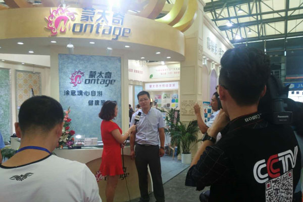 蒙太奇品牌會場內火爆異常,座無虛席,人山人海,將本次展會推向高潮的同時,各大媒體爭先采訪蒙太奇品牌總經理趙廣全,其中以央視CCTV為代表!